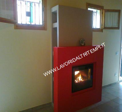 Soluzione in cartongesso con libreria Caminetto in cartongesso moderno con libreriaInserto 70 crystal ventilato